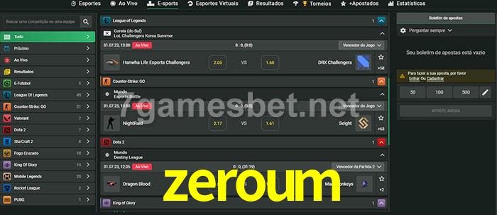 O zeroum oferece uma grande seleção de opções de apostas em e-sports com probabilidades competitivas